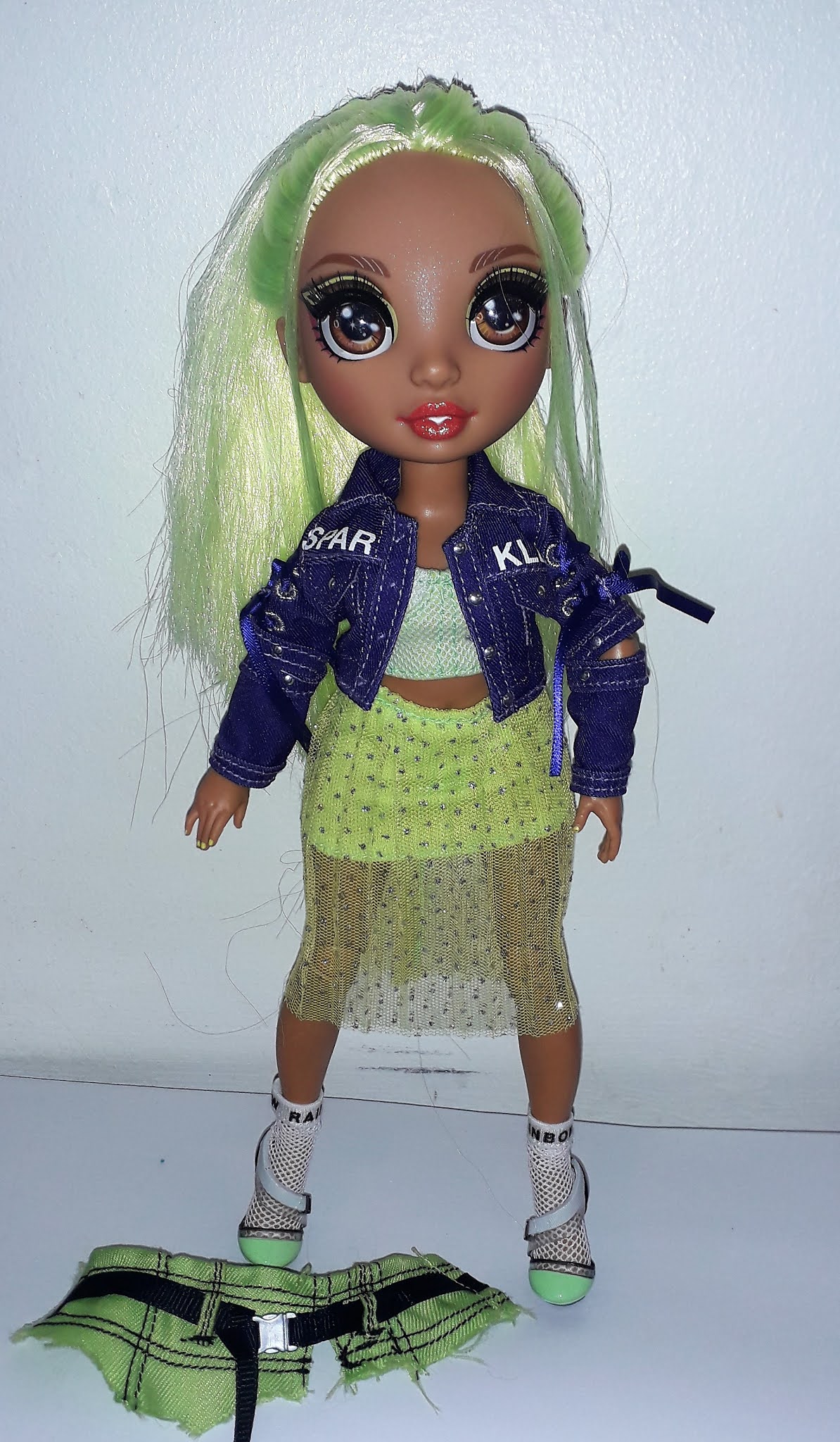 I also got Karma because I LOVE neon green. I put her into Krystal's other jacket which is pretty cool with the tied on sleeves.